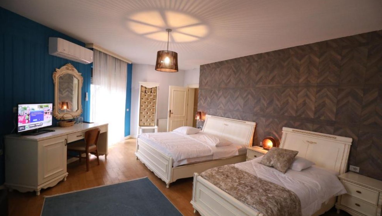Set right on the Ohrid Lake and featuring its private beach area, 1 Maji Hotel is surrounded by a garden and a bar with terrace. Its air-conditioned rooms comprise a furnished balcony and free Wi-Fi access. An on-site restaurant serving international dishes is also provided, as well as free private parking.